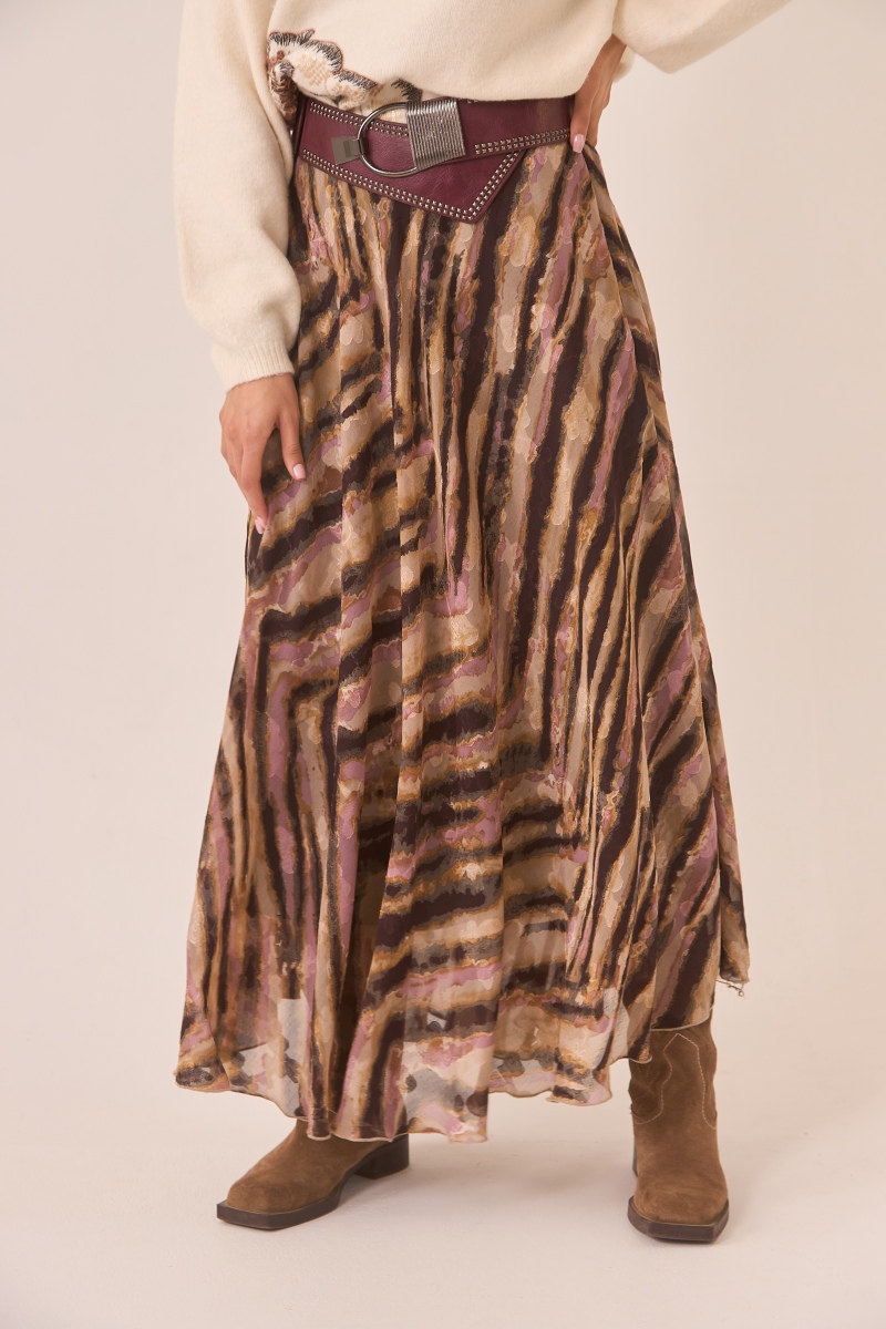 The Nekane skirt in flowing fabric and animal print is perfect if you’re looking for a piece to create bohemian looks with an elegant touch.
